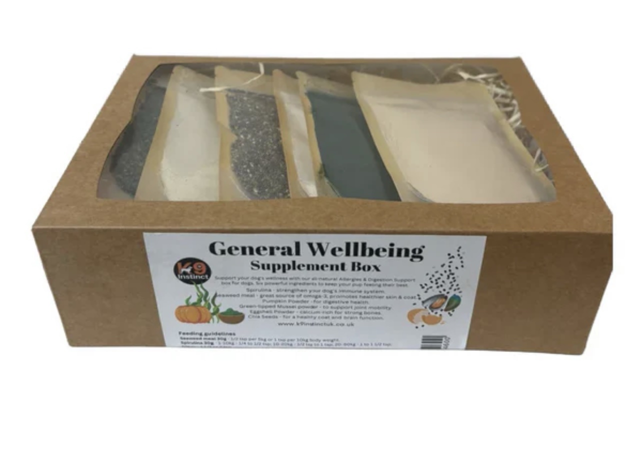 Give your dog the daily boost they deserve with the K9 Instinct General Wellbeing Supplement Box. Each box contains 6 convenient 30g packs of carefully chosen superfoods, designed to promote vitality and overall health from the inside out.